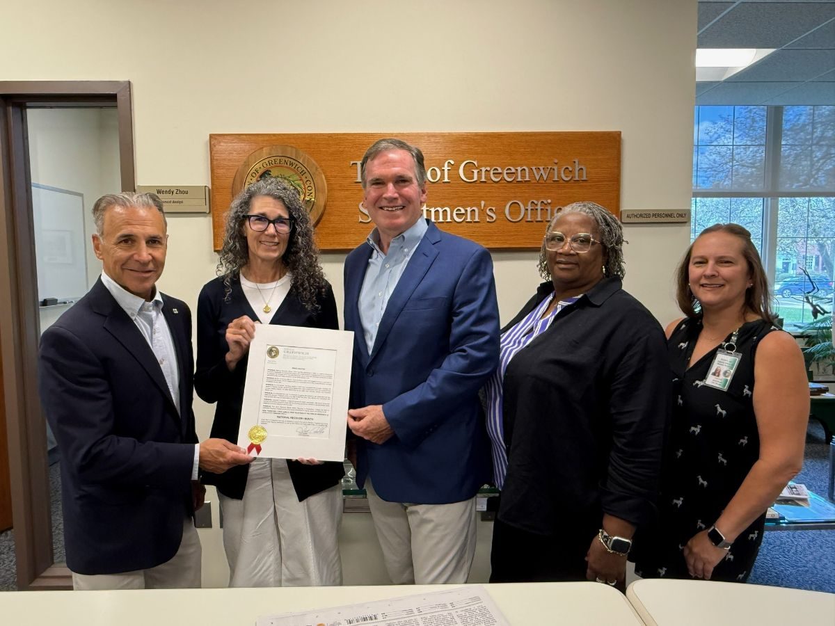 Greenwich issued a proclamation naming September as National Recovery Month. Representatives from Liberation Programs and the Town’s Department of Human Services attended the presentation at Town Hall. Liberation Programs’ 2025 theme is “recovery is everywhere,” highlighting its work to support people with substance use disorder in the region.