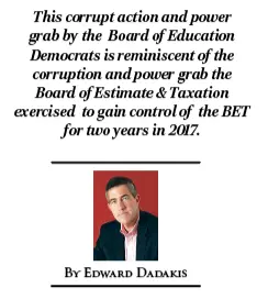 This corrupt action and power grab by the Board of Education Democrats is reminiscent of the corruption and power grab the Board of Estimate & Taxation exercised  to gain control of the BET for two years in 2017. At that time their cheating was so severe that the State Election Enforcement Commission imposed a fine on all 6 BET Democrats. That cumulative fine for those members and one of their Treasurers was the largest cumulative fine ever imposed by the SEEC on a local campaign. That is how bad the BET Democrats corruption was.