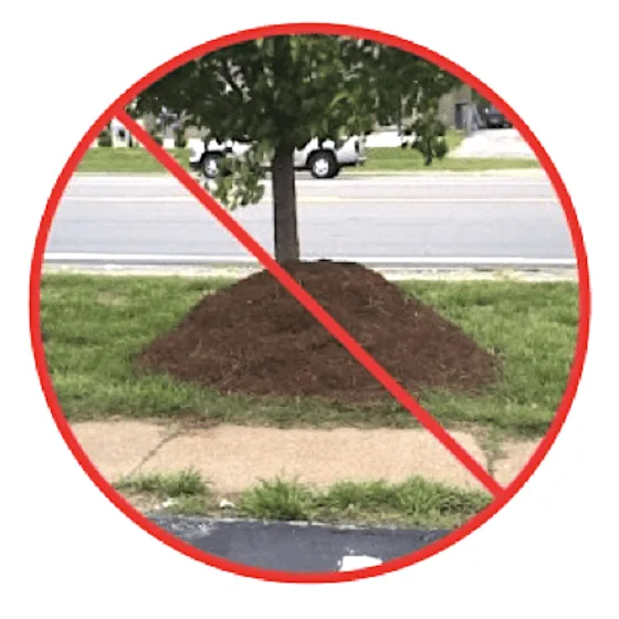 ∙ The location of trees to each other is very important because trees protect each other. Extensive clearing of trees weakens and can kill more than just the trees that are removed. Trees also can be weakened by landscape work which is not done properly. For example. trees can suffer when weed-whacking devices damage the trunks of trees or when mulch is improperly applied creating mulch “volcanoes.”