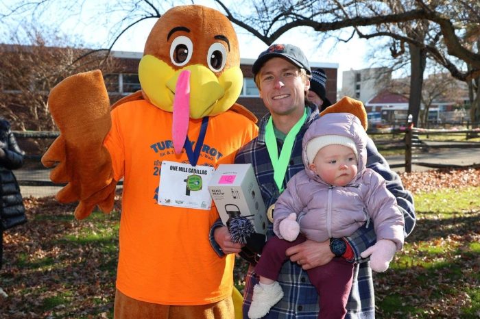 This year’s event introduced a joyful new addition— the Mini Trot for children ages 3–5 — which quickly became a crowd favorite and set the tone for a festive morning across all three races. The one-mile walk/run and competitive 5K race followed with exceptional performances, including an historic milestone: a new men’s course record, with Riverside, CT’s Kyle Grieve finishing 15:20.3, setting an exciting benchmark for future races.