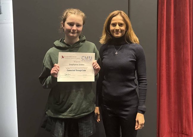 Sacred Heart Greenwich sophomore Stephanie Stibler received two first-place awards and one third-place award in the Carnegie Mellon University Computer Science Academy’s Fall 2025 Creative Task Challenge. The program is an international competition. Sacred Heart Greenwich announced the results.