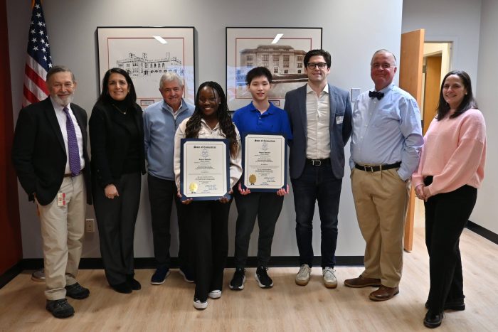 Connecticut General Assembly representatives presented official citations to Greenwich High School seniors Henry Jin and Esther Nabisere for their recent achievements. Jin was named a top 300 scholar in the 2026 Regeneron Science Talent Search and received a $2,000 award, with an additional $2,000 awarded to GHS. Nabisere was selected for the United States Senate Youth Program and will receive a $10,000 undergraduate scholarship funded by The Hearst Foundations.