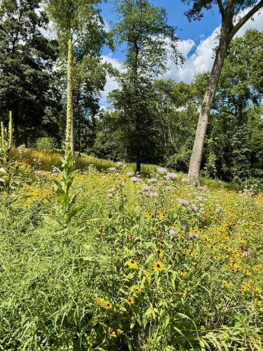 Situated near the parking area, Ross Meadow has become a seasonal showstopper. For the past three years, it has burst into bloom with native wildflowers, drawing pollinators and delighting visitors. Now, thanks to the generosity of thoughtful donors and friends of Bill and Nancy Ross, the meadow will grow even more vibrant. Over the next few years, the existing native meadow will be expanded by an additional acre and further enhanced to support wildlife.