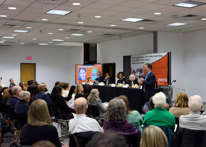 On Thursday, January 22nd, YWCA Greenwich hosted the Coretta Scott & Dr. Martin Luther King Jr. Annual Conversation, a community forum organized by YWCA Greenwich’s Center for Equity & Justice to celebrate the lives of Dr. and Mrs. King. President and CEO of YWCA Greenwich, Mary Lee Kiernan, stated in her opening remarks that the event brought together over 72 community partners, which included schools, clergy, elected officials, and non-profit leaders. This year’s panel discussion was titled Third Spaces: Building Belonging Beyond Home and Work.