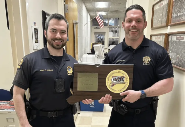 The Greenwich Police Department recognized School Resource Officers Wallace and Reisch for their service to students and the school community. Officer Wallace was also acknowledged for leading the Greenwich High School boys varsity track team to the Class LL state indoor championship and the FCIAC conference indoor championship. The department commended their achievements and dedication.