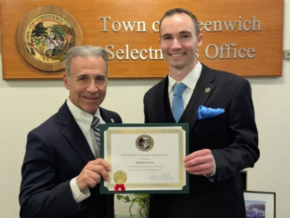 The Greenwich Police Department named Officer D’Arco Officer of the Month for his actions during a December 10, 2025 response to a vehicle linked to a violent domestic incident in Norwalk. He located the vehicle at Exit 4, maintained control of the scene until backup arrived, and the suspect was removed safely and a firearm was recovered. The encounter involved an intoxicated and resistant individual, and the situation was resolved without injury.