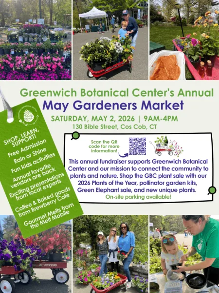 The Greenwich Botanical Center will hold its annual May Gardener’s Market on Saturday, May 2, from 9 a.m. to 4 p.m., marking the start of the spring planting season with a full day of shopping, demonstrations, and community programming.