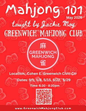 Greenwich Mahjong Club offers its signature Mahjong 101 Beginner Series this May at the Cohen Eastern Greenwich Civic Center. Recently featured in Greenwich Free Press and mentioned in The New York Times as part of the growing